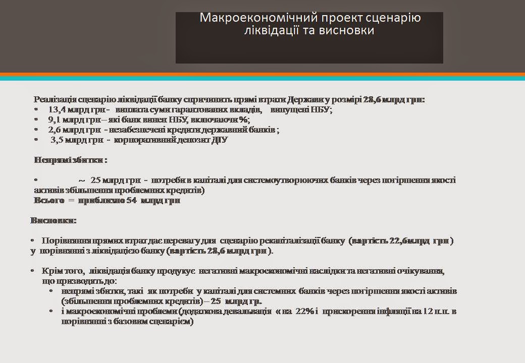 Чего стоит только, в случае ликвидации банка ДОПОЛНИТЕЛЬНЫЕ девальвация НА 22% и рост инфляции дополнительно на 12% :(